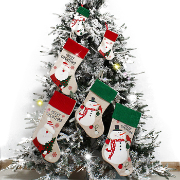 Calcetines de lino de punto con apliques para decoración, calcetín colgante para árbol de Navidad, venta al por mayor