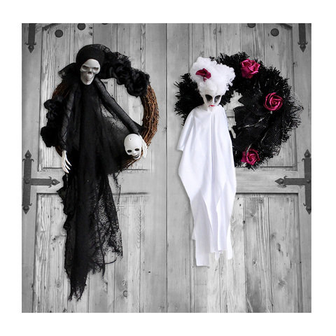 Grosir Dekorasi Liburan Luar Ruangan Pesta Horor Garland Hitam Putih Pintu Hantu Menggantung Halloween Karangan Bunga